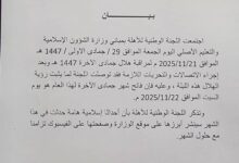 لجنة الأهلة تعلن ثبوت هلال شهر جمادى الآخرة للعام الجاري (بيان)
