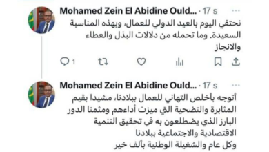 رئيس اتحاد أرباب العمل الموريتانيين يهنئ الشغيلة الوطنية بعيدها الدولي