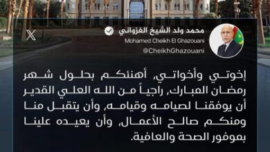 رئيس الجمهورية يهنئ الشعب الموريتاني بمناسبة حلول شهر رمضان المبارك