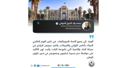 رئيس الجمهورية يهنئ النساء الموريتانيات بمناسبة اليوم العالمي للمرأة