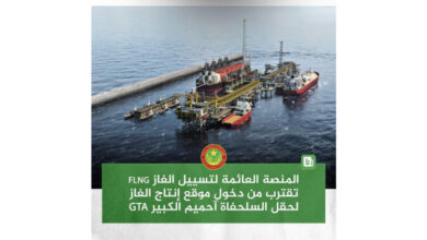 المنصة العائمة لتسييل الغاز تقترب من دخول موقع إنتاج الغاز لحقل السلحفاة آحميم