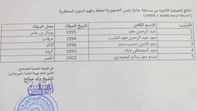 إعلان الفائزين بجائزة رئيس الجمهورية لحفظ وفهم المتون المحظرية