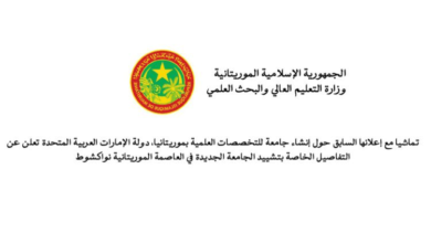 الإمارات تعلن مواصلة الجهود لتشييد جامعة التخصصات العلمية في نواكشوط
