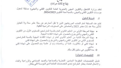 وزارة التشغيل تعلن عن مسابقة للحصول على شهادات CAP وBTS وBT