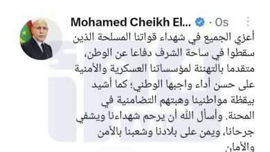 الجيش ينعى شهيد الدرك الوطني الفقيد المصطفى ولد الخضير ولد عبيد