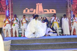 وتضمنت السهرة مدائح نبوية وأناشيد دينية وإلقاءات شعرية فصيحة وشعبية وعروض مسرحية ووصلات فنية متنوعة.