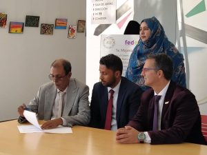 أشرفت وزيرة العمل الاجتماعي والطفولة والأسرة،السيدة صفية بنت انتهاه،أمس الثلاثاء، على توقيع اتفاقية ثلاثية الأطراف بين وزارة العمل الاجتماعي والطفولة والأسرة، ومركز زايد لأطفال التوحد، والاتحادية الإسبانية للمرضى بمرض نادر.