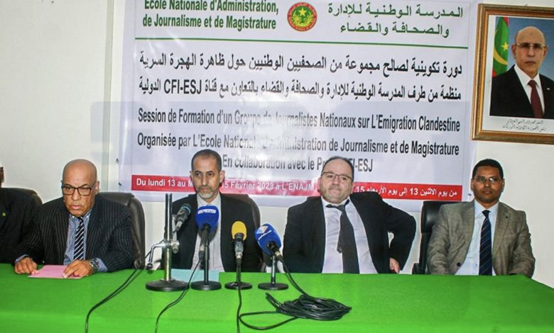 نظمت المدرسة الوطنية للادارة والصحافة والقضاء اليوم الإثنين في انواكشوط دورة تكونية حول الهجرة السرية بالتعاون مع معهد ليل للصحافة بفرنسا وقناة CFI الدولية، لصالح عدد من الصحفيين الموريتانيين.