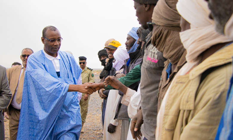 أشرف وزير الإسكان والعمران والاستصلاح الترابي السيد سيد أحمد ولد محمد في منطقة كريير في النعمة على تسليم وسائل استخراج المواد المحلية المُقدمة من طرف مؤسسة تنفيذ الأشغال المُنجَزة بالمواد المحلية لصالح جمعية الدشرة للحجارة والأشغال العامة بالنعمة.