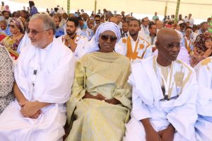وقال معالي الوزير مخاطبا رئيس الجمهورية : “إن إصرار فخامتكم على تنظيم هذا المهرجان وجعله مناسبة ثقافية سنوية لهو دليل صادق على إيمانكم بموريتانيا الموحدة، موريتانيا المنتشية بتاريخها وثقافتها المتنوعة. إن إيمانكم بأن رصيدنا الثقافي هو نتاج تكامل الأدوار بين جميع مكونات المجتمع، وما يترتب على ذلك من ضرورة الاعتراف بكل الجهود والمساهمات، بما يضمن بناء ذاكرة جمعية وطنية تتيح لكل مكون من مكوناتنا المساهمة الفعالة في بناء تاريخنا وحاضرنا ومستقبلنا المنشود، وطبيعي جدا – في ظل هكذا مقاربة – أن يتم خلق مناخ وطني جامع تنصهر فيه تلك الجهود ويكمل بعضها بعضا من أجل مواجهة التحديات الراهنة والمستقبلية، سبيلا سد الطريق أمام دعاة العنف والغلو والتطرف.