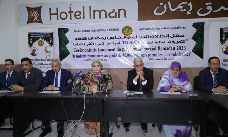 أشرفت وزيرة العمل الاجتماعي والطفولة والأسرة السيدة صفية بنت انتهاه رفقة وزيري الدفاع الوطني والصحة السادة حنن ولد سيدي والمختار ولد داهي، اليوم الخميس بنواكشوط على إطلاق البرنامج الخاص برمضان 2023 للتحويلات المالية لصالح عشرة آلاف أسرة من الأسر الأكثر احتياجا.