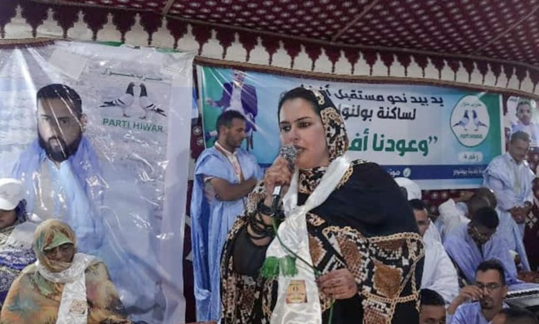افتتحت رئيسة حزب حوار السيدة فاله بنت ميني، الساعة صفر اليوم الجمعة من مركز بولنوار الإداري بولاية داخلت نواذيبو، حملة حزبها للاستحقاقات النيابية والجهوية والبلدية للعام 2023.