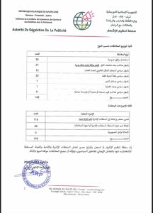 وأوضحت السلطة في بيان صادر عنها اليوم أن مراقبيها “المنتشرين على عموم التراب الوطني” رصدوا هذه المخالفات، مضيفة أنها تتعلق في مجملها بـ7 بنود نص عليها قانون الإشهار.