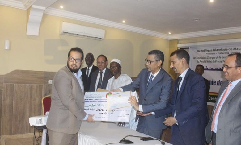 أشرف معالي وزير التعليم العالي والبحث العلمي، وزير الثقافة والشباب والرياضة والعلاقات مع البرلمان وكالة، السيد محمد الأمين ولد آبي ولد الشيخ الحضرامي، اليوم الخميس في انواكشوط على حفل توزيع جوائز التميز الصحفي، المنظم من طرف اللجنة المكلفة بتسيير وتوزيع صندوق الدعم العمومي للصحافة الخاصة الموريتانية.