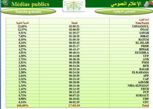 ـ بلغت الحصص المجانية الموفرة للأحزاب بوسائل الإعلام العمومية طيلة أسبوعي الحملة الانتخابية ما مجموعه