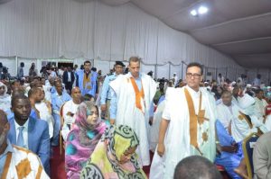 أشوف معالي وزير الثقافة والشباب والرياضة والعلاقات مع البرلمان السيد أحمد سيد أحمد أج، صحبة وزير الوظيفة العمومية والعمل السيد سيدي يحي ولد شيخنا ولد لمرابط و وزير التجارة والصناعة والصناعة التقليدية والسياحة السيد لمرابط ولد بناهي ووزيرة التشغيل والتكوين المهني السيدة زينب بنت أحمدناه، مساء اليوم الخميس بقصر المؤتمرات في نواكسوط على افتتاح مهرجان الأدب والموسيقى، الذي تنظمه اللجنة الوطنية للتربية والثقافة والعلوم في إطار احتفالية نواكشوط عاصمة للثقافة في العالم الإسلامي.