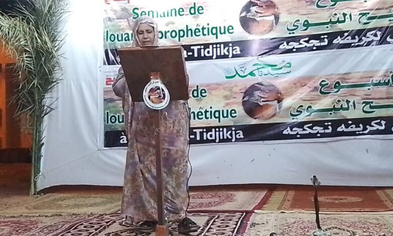 بدورها أوضحت رئيسة نادي المديح النبوي في لكريفه بتجكجة السيده خدي بنت عبد الجليل أن تنظيم هذا المهرجان في هذا الظرف الزمني الذي يصادف ذكرى مولد النبي عليه أفضل الصلاة والسلام لم يكن اعتباطا وإنما كان نابعا من حبنا لنبينا وحرصنا على التعريف بشمائله والتنويه بها من خلال تكرار مدائحه.