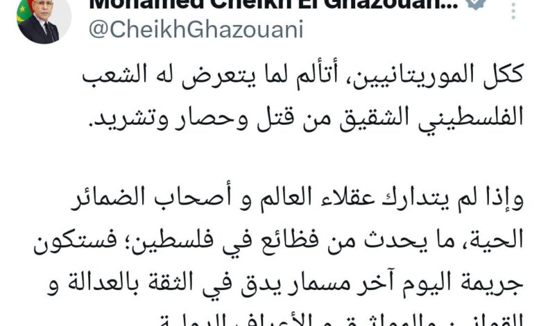“ككل الموريتانيين، أتألم لما يتعرض له الشعب الفلسطيني الشقيق من قتل وحصار وتشريد.