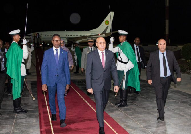 عاد فخامة رئيس الجمهورية السيد محمد ولد الشيخ الغزواني، نواكشوط، فجر اليوم الثلاثاء إلى نواكشوط، قادما من المملكة العربية السعودية، بعد أن شارك في قمتين، سعودية افريقية، وعربية إسلامية استثنائية، لبحث العدوان الإسرائيلي على قطاع غزة.
