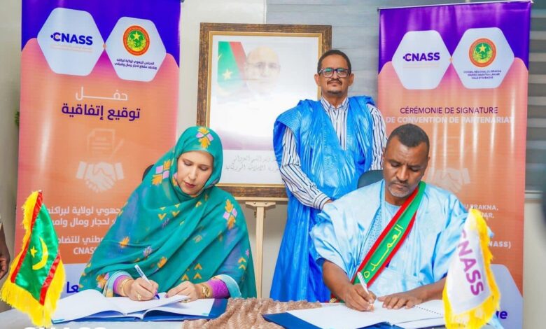 تم اليوم الاثنين في مدينة الاك، عاصمة ولاية البراكنه، التوقيع على اتفاق تعاون وشراكة بين الصندوق الوطني للتضامن الصحي “اكناس” مع المجلس الجهوي للبراكنة وعمد بلديات مقطع لحجار وامبان ومال.