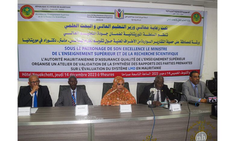 نظمت السلطة الموريتانية لضمان جودة التعليم العالي، اليوم الخميس في نواكشوط، ورشة للمصادقة على حصيلة التقارير الواردة من الأطراف المعنية حول تقويم نظام ليصانص، ماستر ودكتوراه (LMD) في موريتانيا.