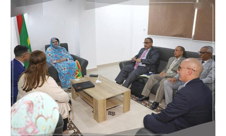 استقبلت معالي وزيرة التشغيل والتكوين المهني، السيدة زينب بنت أحمدناه، اليوم الثلاثاء بنواكشوط، وفدا من المعهد الجزائري العالي للبترول “سوناطراك” برئاسة المدير العام للمعهد السيد عبد القادر قنون الذى يؤدي زيارة عمل لبلادنا.