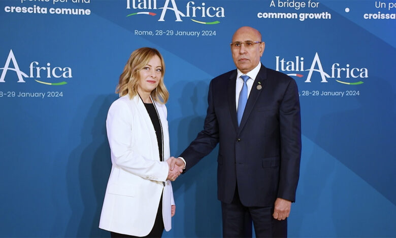 استُقبل فخامة رئيس الجمهورية السيد محمد ولد الشيخ الغزواني، صباح اليوم الاثنين فور وصوله لقصر مجلس الشيوخ الإيطالي بروما، للمشاركة في القمة الإيطالية الافريقية، من طرف رئيسة الوزراء الإيطالية السيدة جورجا ملوني.