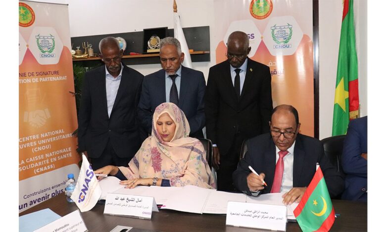 أشرف معالي وزير التعليم العالي والبحث العلمي، السيد انيانغ مامودو، الأربعاء بنواكشوط، على توقيع اتفاقية شراكة بين المركز الوطني للخدمات الجامعية والصندوق الوطني للتضامن الصحي “اكناس”.