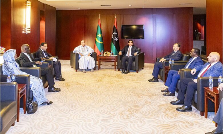 استقبل فخامة رئيس الجمهورية، السيد محمد ولد الشيخ الغزواني، مساء اليوم الجمعة بمقر الاتحاد الافريقي بأديس أبابا، رئيس المجلس الرئاسي الليبي، السيد محمد المنفي.
