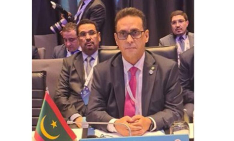 وأضاف أن الموقف الذي دأبت بلادنا على التعبير عنه في مختلف المحافل الدولية، هو ما أكد عليه فخامة رئيس الجمهورية السيد محمد ولد الشيخ الغزواني في خطابه، بأديس أبابا، بمناسبة استلامه الرئاسة الدورية للاتحاد الإفريقي، وهو موقف ثابت لا يتغير، يجسد تمسكَ بلادنا، بحل عادل دائم يصون حقوق الشعب الفلسطيني ويضمن قيام دولته المستقلة، وعاصمتها القدس الشريف، على حدود 04 يونيو 1967، طبقا لقرارات الشرعية الدولية. وهو مطلب لن ينعم، قبل تحققه، العالم بالأمن والاستقرار، ولن يستعيد الضمير الإنساني كرامته المهدورة ما لم يقف العالم، وقفة جادة تنهي نزيف حياة الأطفال والنساء، وتوقف القوة المحتلة عند حدودها.