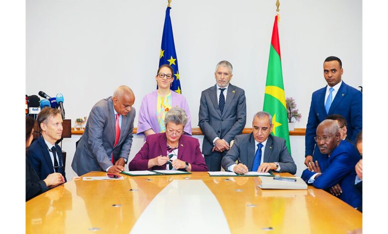 وأضاف أن هذه الزيارات مكنت من تصور وتحضير الإعلان المشترك، الذي تم توقيعه اليوم، ضمن المحطة الخامسة في هذه الديناميكية المتواصلة، والذي هو بمثابة وثيقة مرجعية بهذا الخصوص، مبينا أن هذه الشراكة متعددة الجوانب، تشمل مكونات اقتصادية، وديبلوماسية، وأمنية، وفي مجال الهجرة الشرعية نحو أوروبا، لصالح الموريتانيين، ومكافحة الهجرة غير الشرعية، واللاجئين.