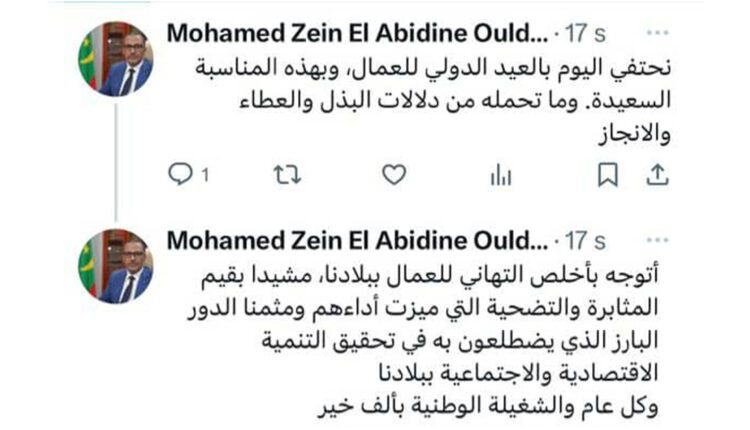 جاء ذلك في تغريدة له كتبها عشية فاتح مايو على منصة (X):