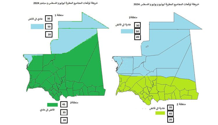 قال مدير التوقعات في الهيئة الوطنية للأرصاد الجوية، سيدي ولد محمد الأمين، إن هناك توقعات مشجعة بشأن موسم الأمطار المتوقع في موريتانيا خلال موسم خريف 2024 القادم.