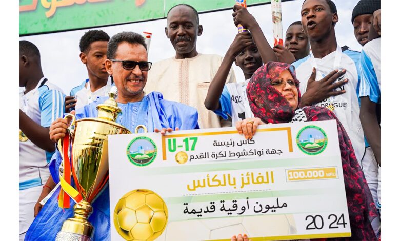 أشرف معالي وزير الثقافة والشباب والرياضة والعلاقات مع البرلمان السيد أحمد سيد احمد ولد أج، مساء امس الأحد بملعب الشيخه بيديه بالعاصمه انواكشوط، على اللقاء النهائي من النسخة الثانية في كأس رئيسة جهة انواكشوط السيدة فاطمة منت عبد المالك المنظمة تحت شعار “لا للمخدرات” وتنافس في هذا اللقاء فريقا نسور ملح بتوجنين وكونكورد ازاك من السبخة، حيث فاز الأخير في ركلات الترجيح ليتوج بكأس رئيسة الجهة، ويحصد ميداليات وجائزة مالية قدرها مليون اوقية قديمة، فيما حصد الفريق الوصيف جائزة مالية قدرها 600000 اوقية قديمة، بينما حصل فريق اتحاد الدار البيضاء من الميناء الذي حل في المركز الثالث على جائزة مالية قدرها 400000 أوقية قديمة.