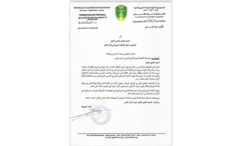 الاتحادية الموريتانية لكرة القدم توافق على انضمام ناديي الهلال والمريخ السودانيين للعب في الدوري الممتاز