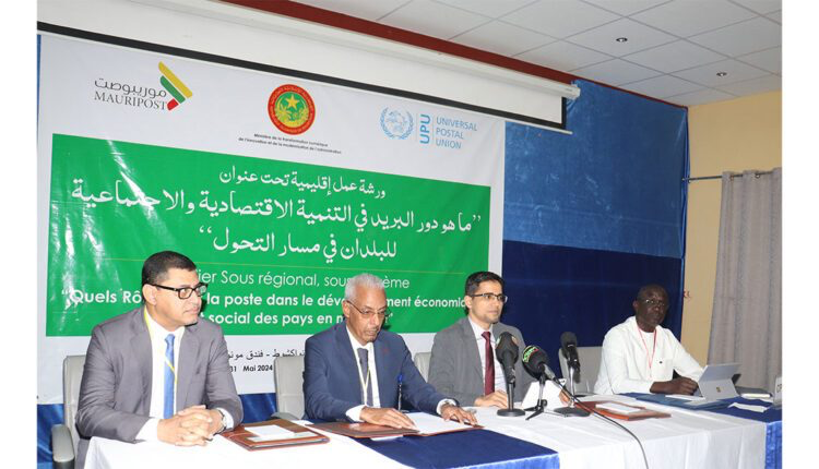 أشرف معالى وزير التحول الرقمي والابتكار وعصرنة الإدارة السيد محمد عبد الله ولد لولي، اليوم الخميس بنواكشوط، على افتتاح ورشة العمل الإقليمية حول دور البريد في التنمية الاقتصادية والاجتماعية للبلدان في مسار التحول، منظمة بالتعاون بين الشركة الموريتانية للبريد” موريبوصت” واتحاد البريد العالمي.