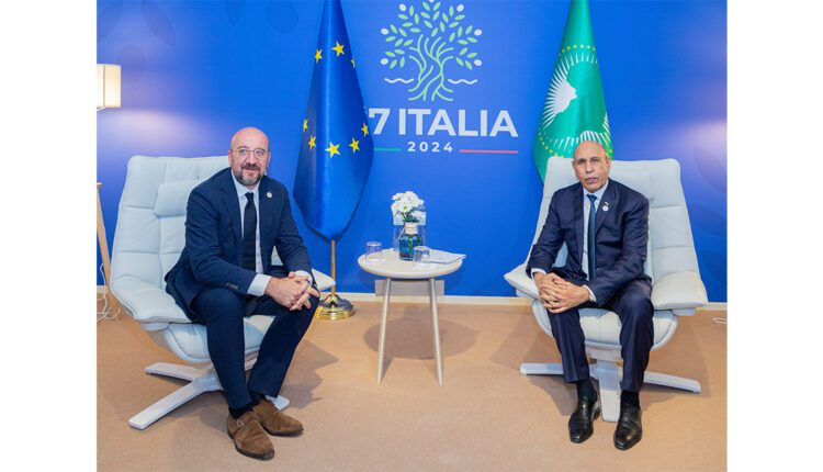 التقى فخامة رئيس الجمهورية، رئيس الاتحاد الإفريقي السيد محمد ولد الشيخ الغزواني، مساء اليوم الجمعة، رئيس المجلس الأوروبي، السيد شارل ميشيل، وذلك على هامش قمة مجموعة السبع المنعقدة بمدينة باري الإيطالية.