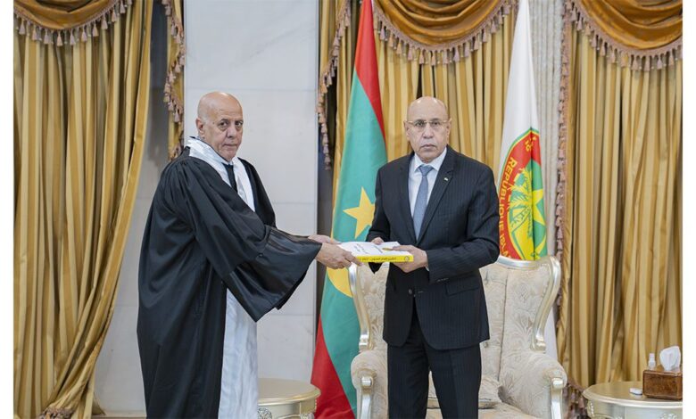 تسلم فخامة رئيس الجمهورية، السيد محمد ولد الشيخ الغزواني، صباح اليوم الأربعاء بالقصر الرئاسي في نواكشوط، التقرير السنوي العام لمحكمة الحسابات من رئيس المحكمة السيد حميد ولد أحمد طالب.