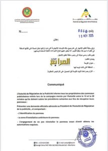 إعلان من سلطة تنظيم الإشهار حول إجراءات استعادة اللوحات المصادرة