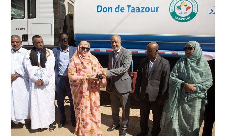 بتوجيهات سامية من فخامة رئيس الجمهورية، السيد محمد ولد الشيخ الغزواني، قدمت المندوبية العامة للتضامن الوطني ومكافحة الاقصاء “التآزر” اليوم الثلاثاء لبلديات ولاية نواكشوط الشمالية ثلاثة صهاريج لنقل المياه الصالحة للشرب و140 خزان مياه هبة من التآزر لبلديات تيارت، دار النعيم وتوجنين.