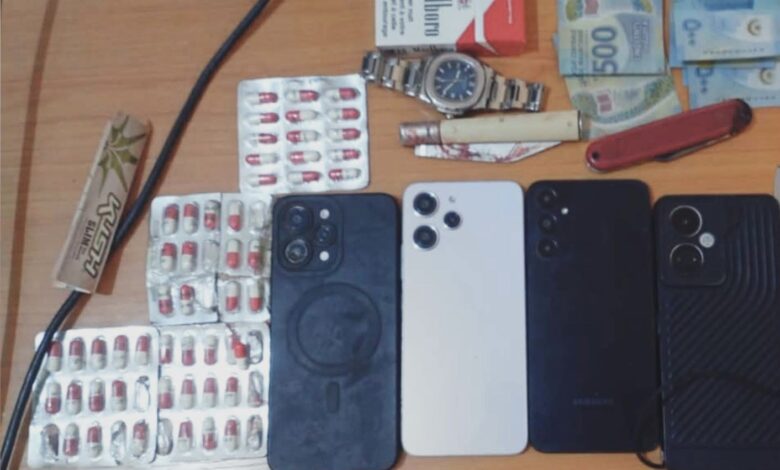 وبحسب بيان الشرطة؛ ضُبطت بحوزة المعنيين كمية من حبوب “لاريكا” المهلوسة، وكمية من حبوب “لفترين”، وعلبة لفائف من “لارزين”.