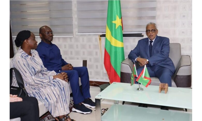 حضر اللقاء إلى جانب معالي الوزير كل من المكلف بمهمة الحسينو بام، والمدير العام للتمويلات والتعاون الاقتصادي محمد سالم ولد الناني.