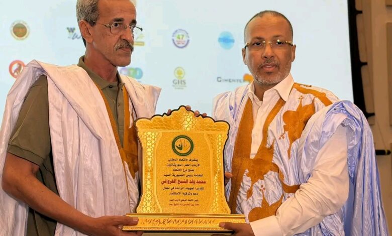 تكريم رئيس الجمهورية بدرع الاتحاد الوطني لأرباب العمل الموريتانيين خلال “إكسبو موريتانيا 2026”